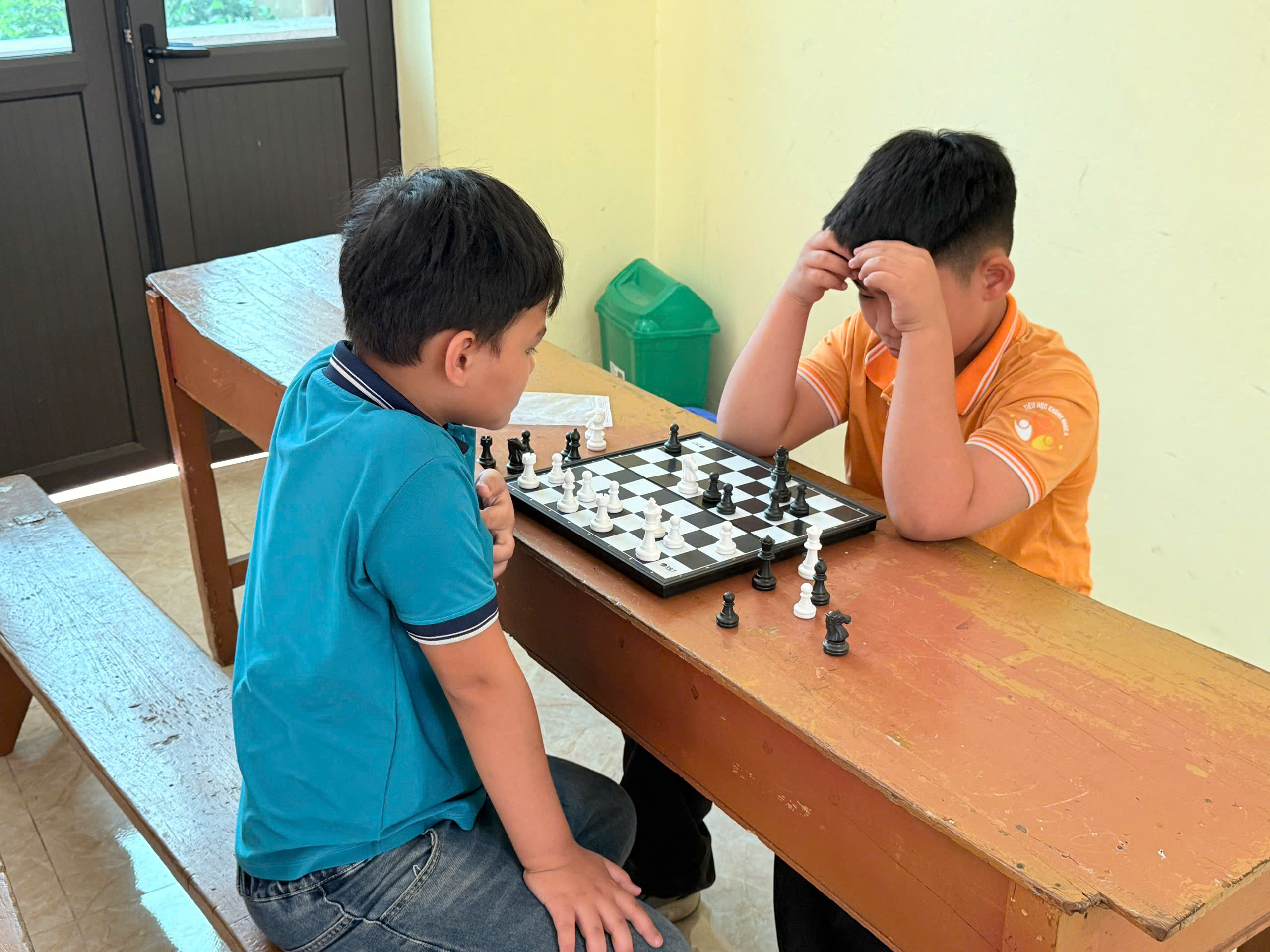 Môn cờ vua, thể hiện tư duy linh hoạt và bản lĩnh thi đấu vững vàng: Em Nguyễn Chí Thanh đã xuất sắc giành Huy chương Vàng nội dung nam, em Nguyễn Quỳnh Chi đạt Huy chương Bạc nội dung nữ lứa tuổi dưới 11 tuổi.