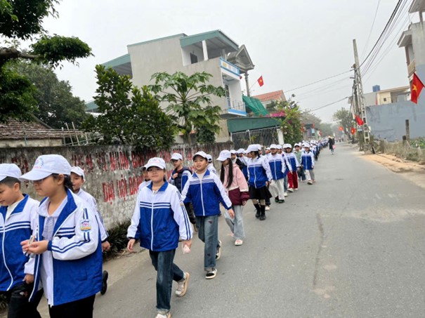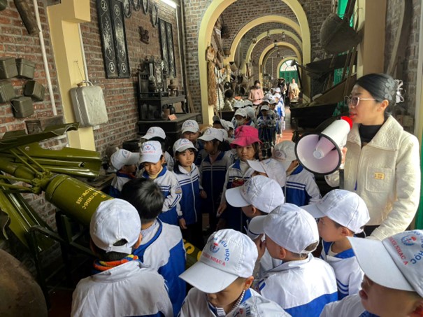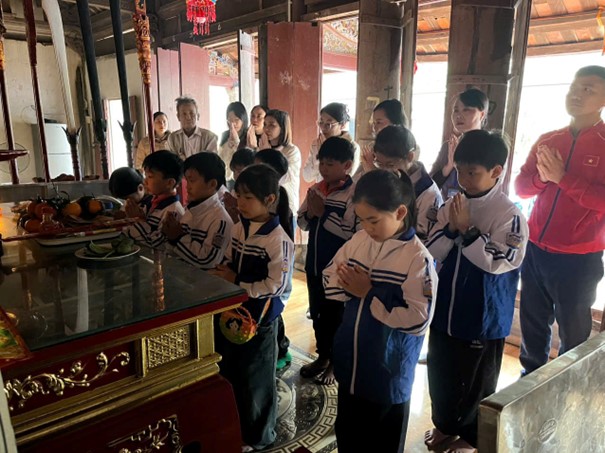 Hành trình của các em học sinh khối 1, 2, 3 đó là chuyến tham quan đền thôn Đồng – nơi lưu giữ những giá trị văn hóa, lịch sử của quê hương. Tại đây, học sinh được giáo dục truyền thống “uống nước nhớ nguồn”, bồi đắp lòng tự hào và ý thức gìn giữ bản sắc văn hóa dân tộc.