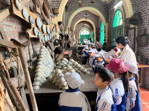 Đặc biệt, khi tham quan khu tiểu cảnh Green và khu trưng bày các dụng cụ lao động, đồ dùng sinh hoạt …xưa, các em không khỏi thích thú trước những vật dụng mộc mạc, giản dị của ông cha ta ngày trước; các em được ngắm nhìn cảnh đẹp của khu tiểu cảnh. Qua đó, học sinh hiểu thêm về nếp sống tiết kiệm, cần cù và trân trọng hơn những giá trị của cuộc sống hôm nay và thêm yêu cảnh đẹp của địa phương.