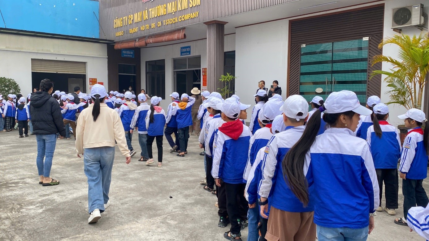 Tại xưởng may công nghiệp, các em được tận mắt quan sát quy trình sản xuất hiện đại, tác phong làm việc nghiêm túc và tinh thần trách nhiệm của người lao động. Những hình ảnh thực tế ấy giúp học sinh hiểu hơn về giá trị của lao động, ý thức kỷ luật và sự trân trọng đối với thành quả làm ra.
