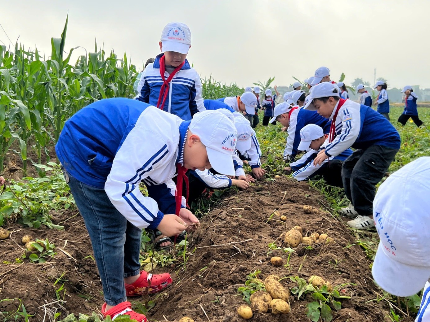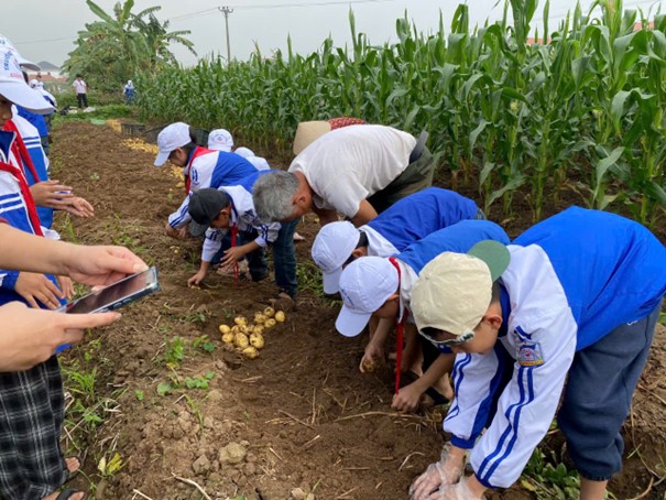 Trong chuyến tham quan và trải nghiệm, các em khối lớp 4,5 đã được đến xưởng may công nghiệp xóm Chùa, tham quan vườn cây ăn quả và đặc biệt là các em được trải nghiệm bới khoai tây tại cánh đồng khoai tây của gia đình bác Hiển xóm Chùa.