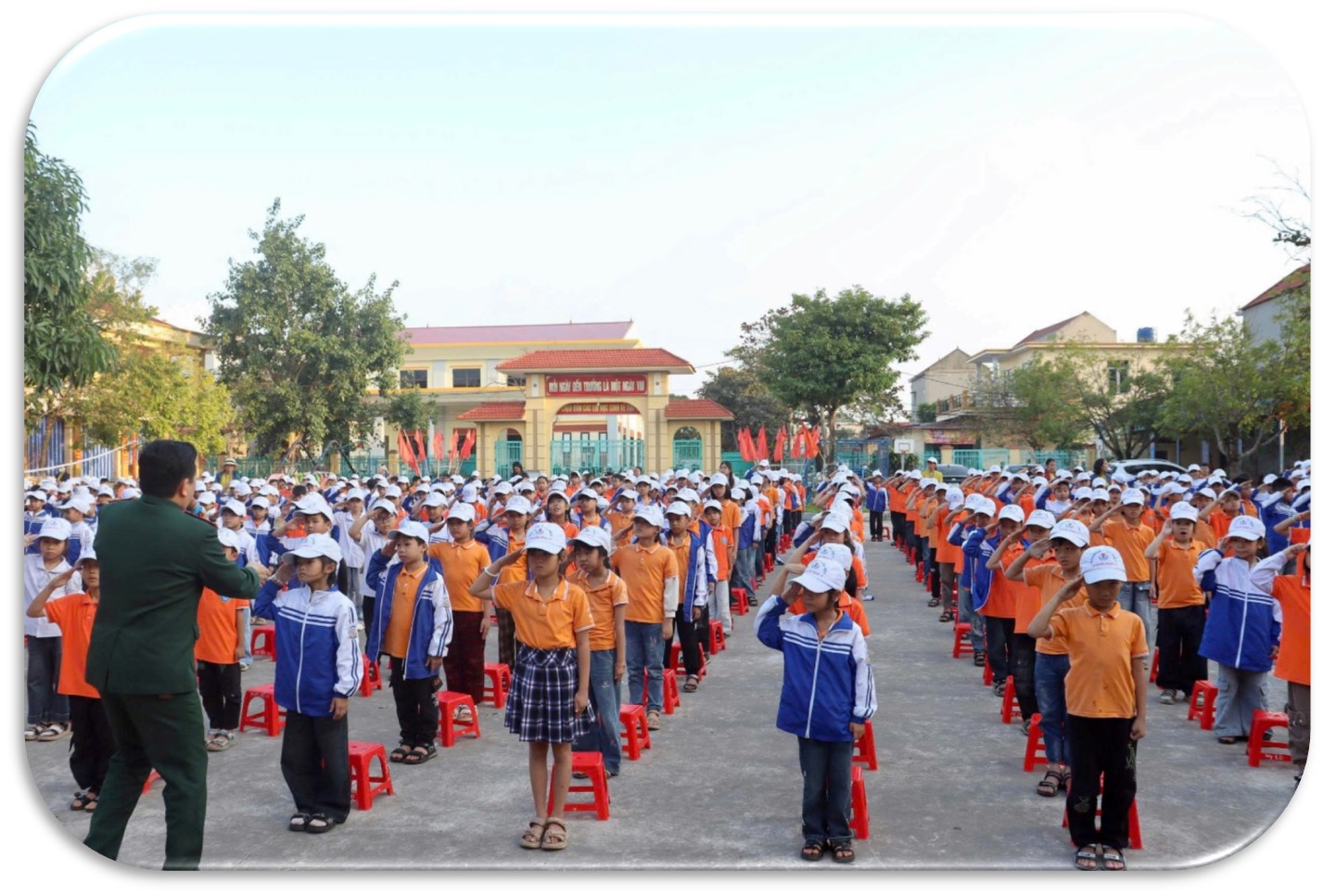 Chương trình được tổ chức chu đáo, trang trọng với sự tham gia của cán bộ, giáo viên, nhân viên nhà trường, các đồng chí cán bộ Ban chỉ huy phòng thủ phòng thủ 2 – Tam Điệp cùng toàn thể 813 học sinh. Ngay từ những phút đầu, không khí sân trường đã trở nên rộn ràng, xúc động và đầy tự hào.